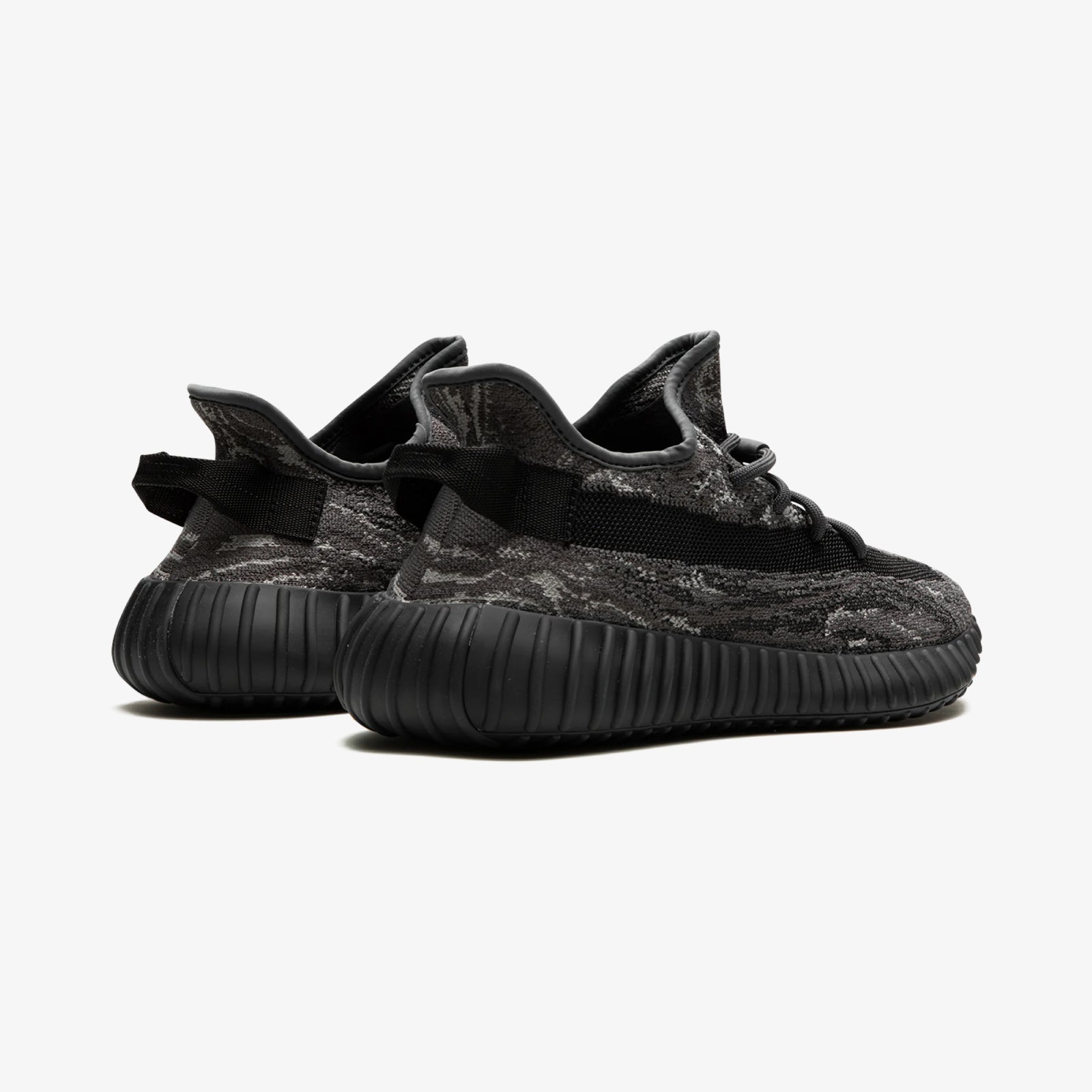 The adidas Yeezy Boost 350 V2 MX Dark Salt, released in August 2023, offers a sophisticated and muted colourway blending soft greys, charcoals, and subtle earthy undertones. The Primeknit upper showcases a marbled woven pattern, complemented by a solid black lateral stripe and matching heel tab webbing for a sleek contrast. The shoe rides on a full-length Boost midsole enclosed in a ribbed black TPU cage, providing iconic comfort and responsive cushioning.