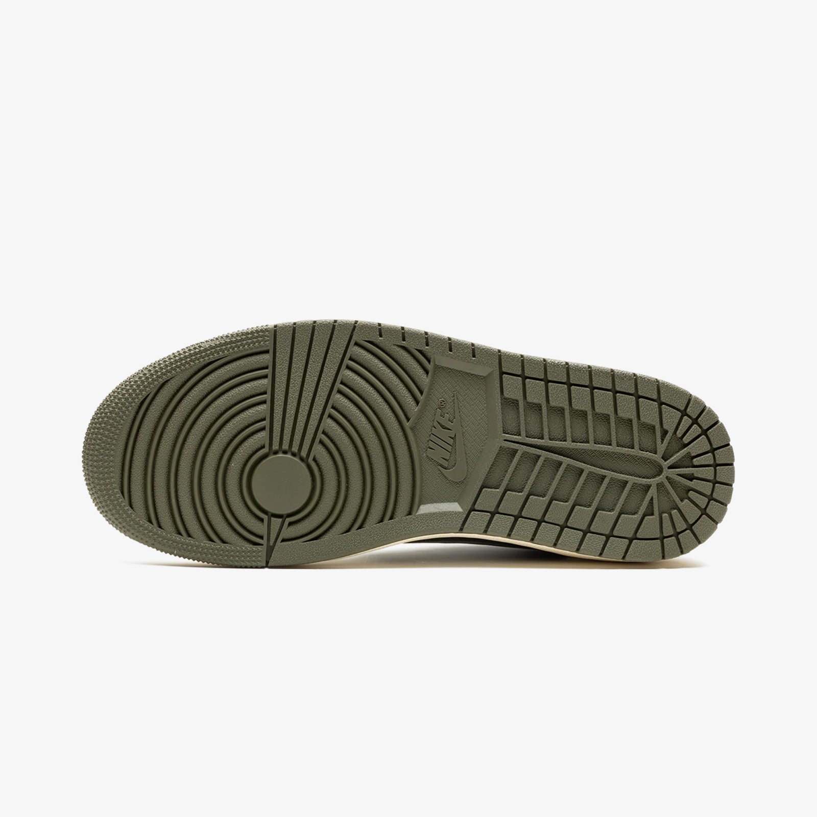 This sneaker honours the Air Jordan 1 legacy with a subtle yet sophisticated colour scheme and premium materials. The cream midsole complements the olive outsole for a balanced look that is both stylish and durable. The design blends the ethos of streetwear culture with functional craftsmanship, offering comfort and lasting wear.