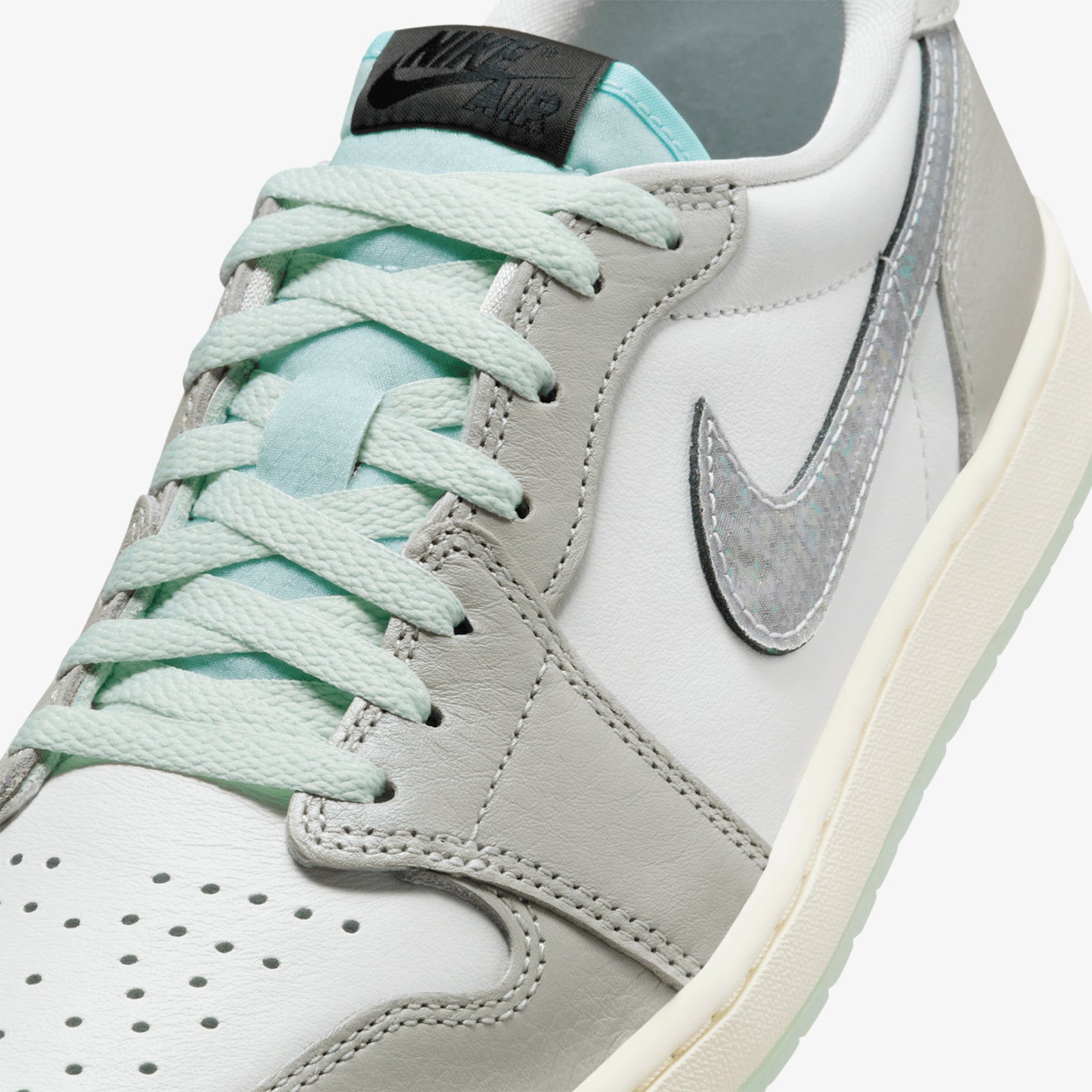 The Jordan 1 Retro Low OG Year of the Snake marks a refined celebration of the Lunar New Year with a blend of elegance and subtle symbolism. Crafted predominantly in “Summit White” perforated leather, it’s layered with “Photon Dust” silver overlays that add a modern contrast. The signature Swoosh features a ripstop texture that mimics shed snakeskin, providing intricate detailing without overwhelming the clean aesthetic.