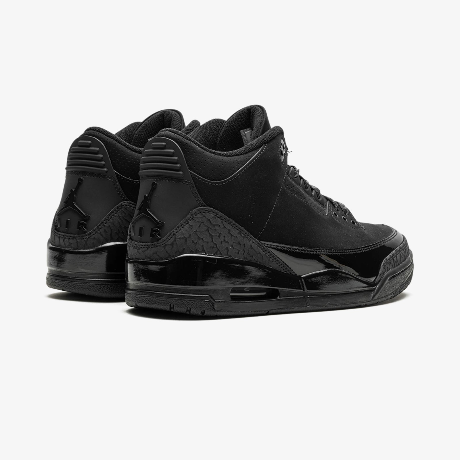 The Jordan 3 Retro Black Cat, released in January 2025, is a sleek and exclusive edition celebrating Michael Jordan’s iconic nickname, “Black Cat.” This model features a monochromatic design combining black and dark charcoal hues with premium materials including leather, nubuck, and patent leather for a luxurious finish. Signature elephant print overlays surround the toe box and heel, adding depth and texture to the silhouette.