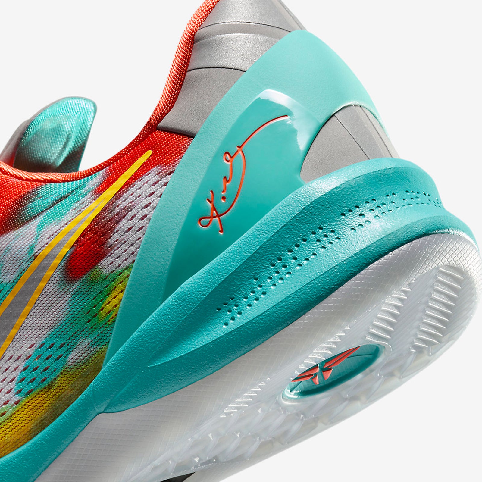 The Nike Kobe 8 Protro Venice Beach, released in April 2024, is a vibrant revival of a beloved Kobe Bryant signature edition. This sneaker draws inspiration from Venice Beach, a legendary basketball and skateboarding hotspot in Los Angeles. Featuring a stadium grey engineered mesh upper adorned with dynamic splashes of red, teal, yellow, and orange, it perfectly captures the eclectic and energetic spirit of the California locale.
