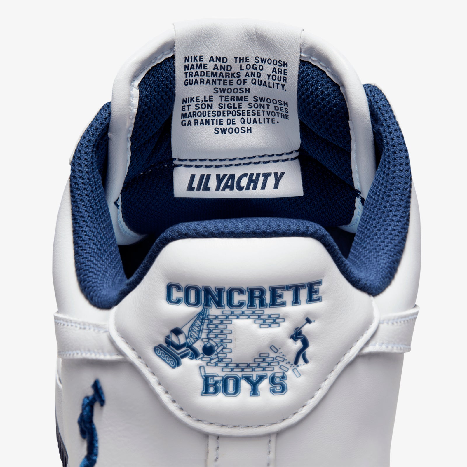 The Nike Air Force 1 Low Lil Yachty Concrete Boys It's Us merges white and navy leather with unique branding and Nike Air comfort.