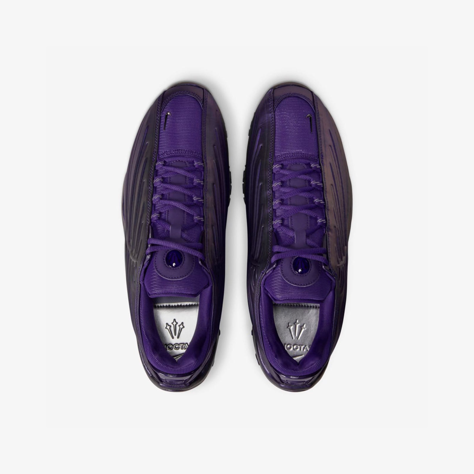 The Nike Hot Step 2 Eggplant, released in August 2024, is a bold entry in Drake’s NOCTA collection. Featuring a premium synthetic leather upper with a metallic iridescent eggplant finish, this sneaker balances urban style with futuristic design. Gunmetal mesh panels and University Gold accents enrich the silhouette, while a baby blue sockliner with metallic NOCTA branding adds a unique highlight.