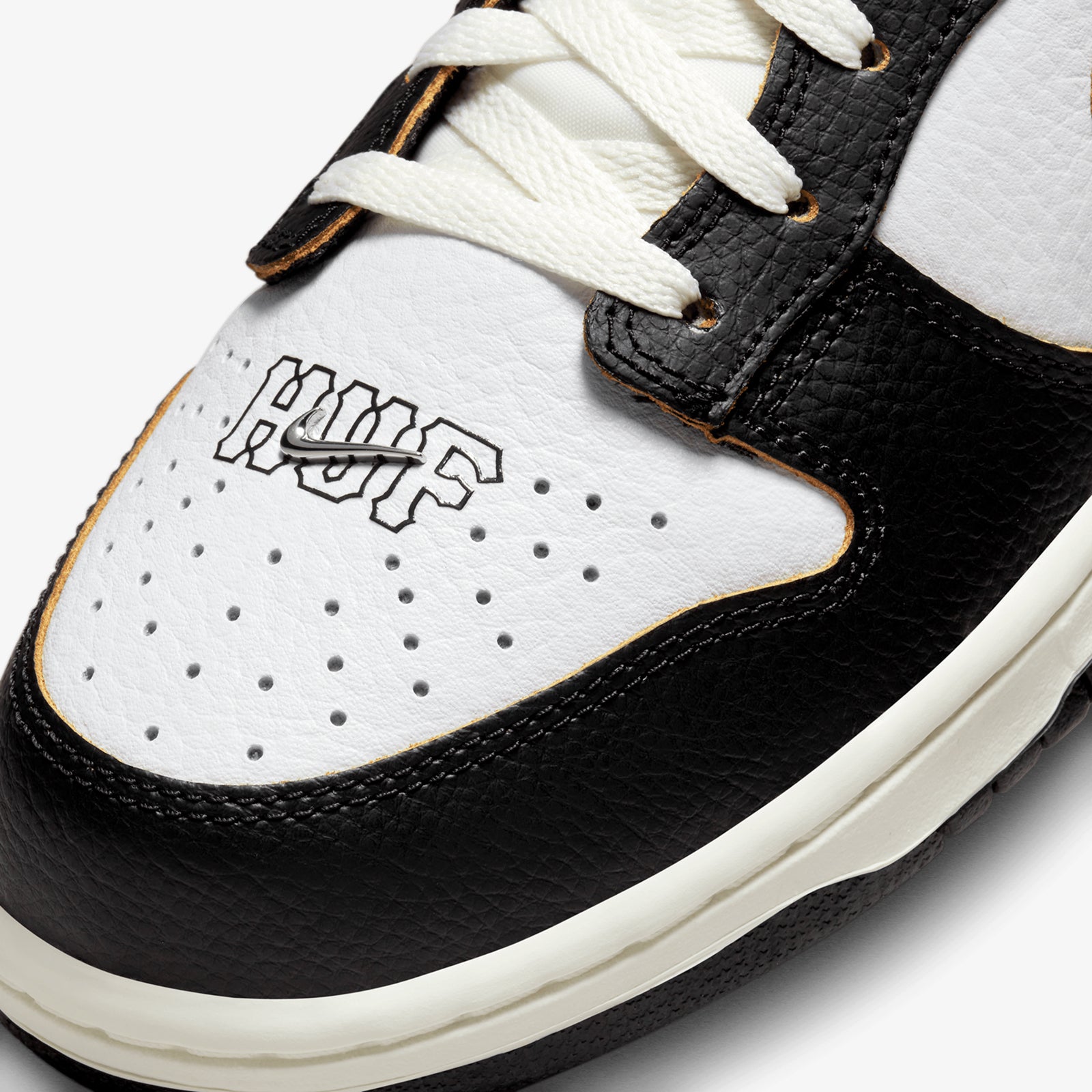 The Nike SB Dunk Low HUF San Francisco celebrates the 20th anniversary of the skatewear brand HUF and founder Keith Hufnagel’s roots in San Francisco. It features a premium white tumbled leather base with contrasting black leather overlays, accented by orange details that reflect the city’s vibrancy.