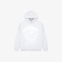The Sp5der OG Web Hoodie Heather Grey captures the essence of bold streetwear through a modern lens, blending comfort and visual impact. Made from a plush 23oz cotton-blend fleece, this hoodie features a heather grey base with distinctive white puff-printed graphics. The centerpiece is a large, stylised spider-web covering the chest and torso, combining OG Sp5der lettering and a web motif, with additional star accents on the sleeves for a dynamic touch.