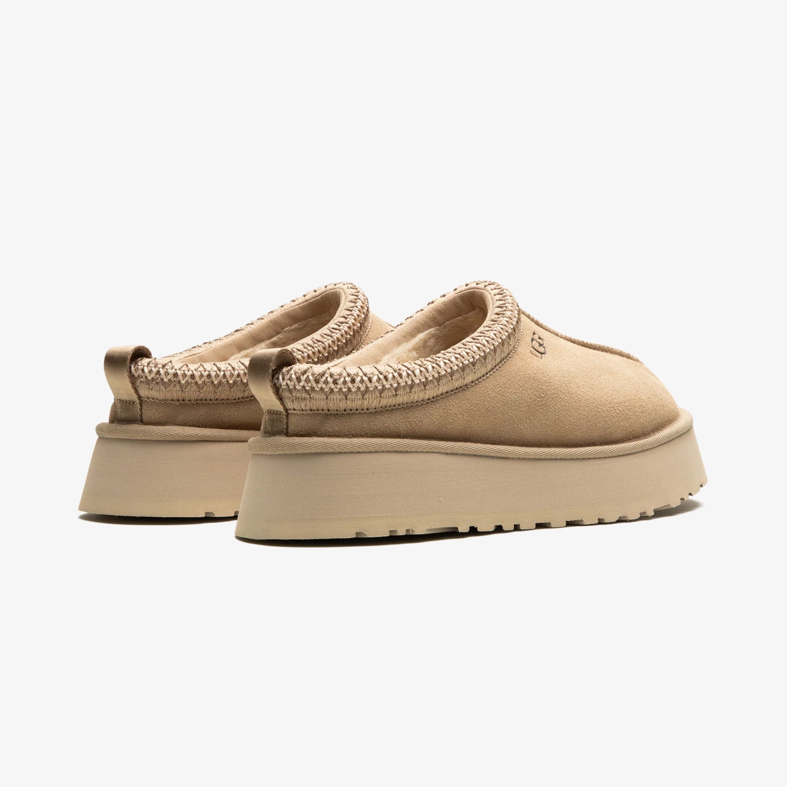 The UGG Tazz Slipper Mustard Seed elevates the classic slip-on slipper with a stylish platform sole and modern detailing. Crafted from premium mustard seed suede, this slipper features plush 10mm UGGplush™ lining and insole made from a blend of upcycled wool and TENCEL™ Lyocell, ensuring luxurious warmth and all-day comfort. A finely embroidered UGGbraid collar adds sophistication and sustainability, while the durable rubber outsole provides traction for indoor and outdoor wear.