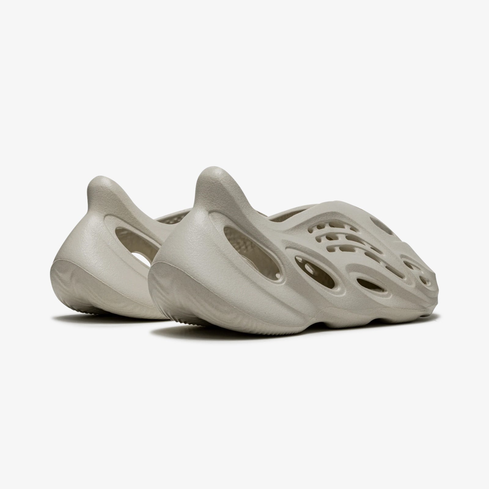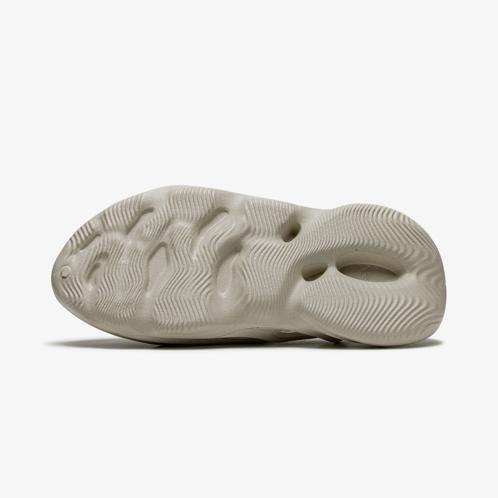 The adidas Yeezy Foam RNNR Sand, released in March 2021, offers a refined and versatile take on the Foam RNNR design. Crafted from a single-piece EVA foam infused with harvested algae, this model features a monochromatic Sand colourway that blends beige and natural earth tones. Its sculptural form is punctuated by varied perforations to enhance breathability and provide a distinct visual texture.