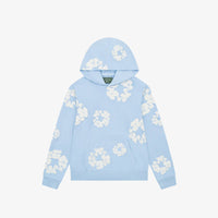 The Denim Tears The Cotton Wreath Sweatshirt Grey blends contemporary streetwear and historical reflection, positioning itself as an artifact within modern wardrobes. Crafted from 100% premium cotton, it features a relaxed fit with ribbed cuffs, hem, and a classic crewneck, all enriched by a brushed fleece lining for added comfort. Across the light grey cotton backdrop, the iconic puff-printed cotton wreath motif appears throughout, referencing the African-American experience and its connection to the cotton industry.