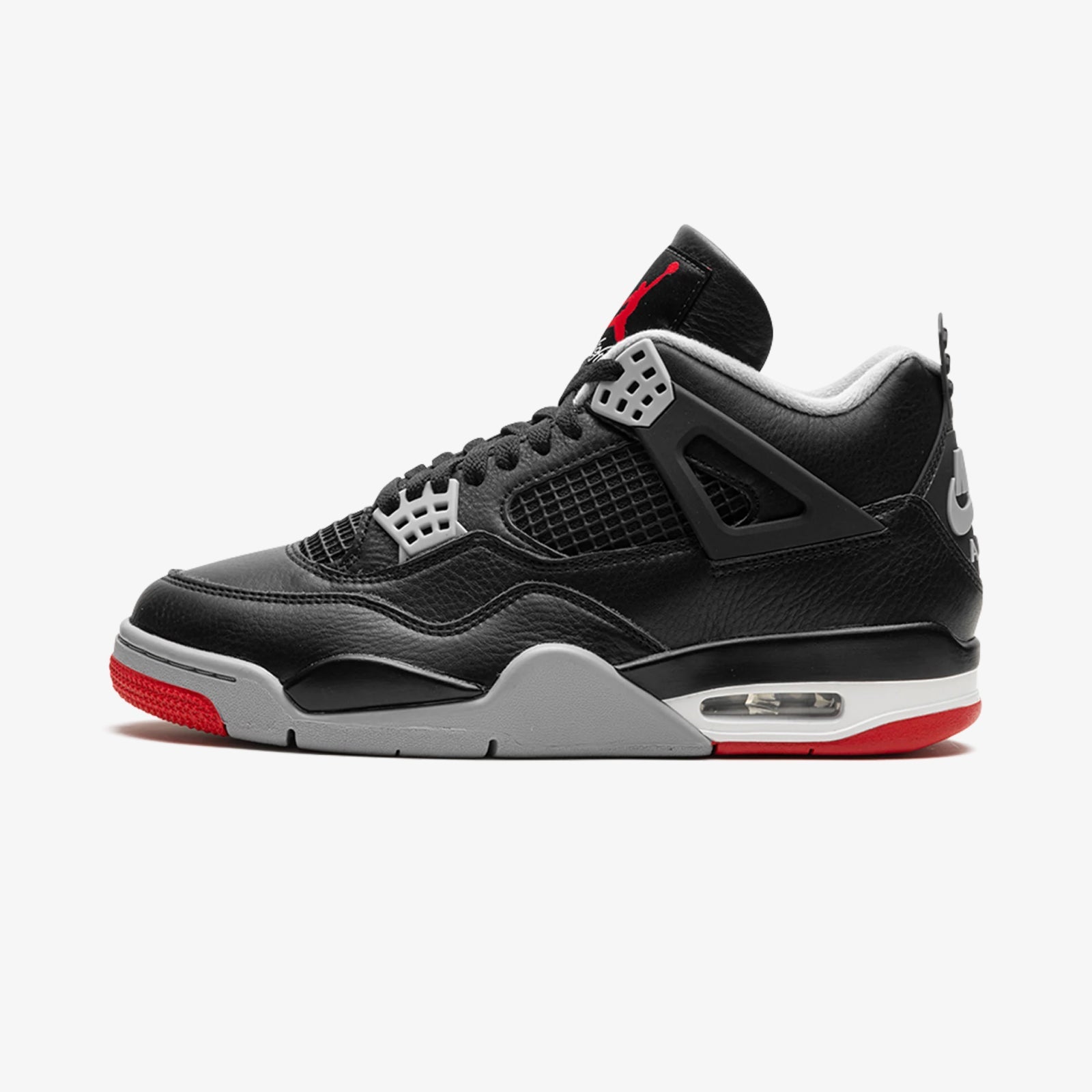 Launched on February 17, 2024, Jordan 4 Retro Bred Reimagined commemorates both Michael Jordan’s birthday and the 35th anniversary of the silhouette. The reimagined update trades the original’s nubuck upper for supple, full-grain black leather, bringing a refined texture and fresh vintage edge to this legendary model. Signature cement grey and varsity red accents grace the tongue, eyelets, midsole, and outsole, celebrating Chicago Bulls colours and basketball heritage.