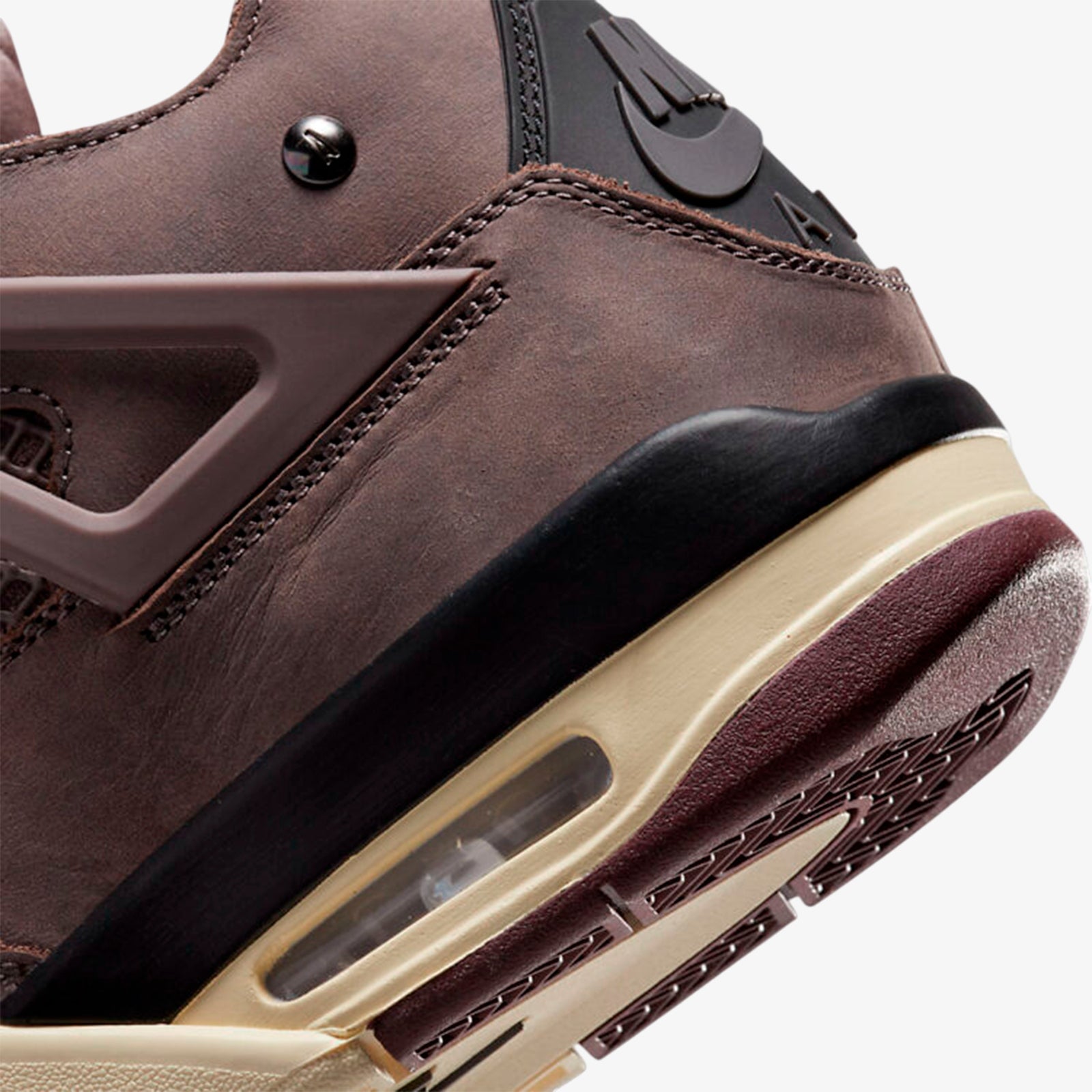 Classic elements like the Nike Air-branded heel tab and woven “Flight” tags on the tongue with alternating Jumpman and A Ma Maniére logos maintain authenticity. The sneaker features a cream polyurethane midsole with visible Air cushioning in the heel, enhancing comfort and style. The padded, quilted textile lining inside enhances the fit and exclusivity of the design.