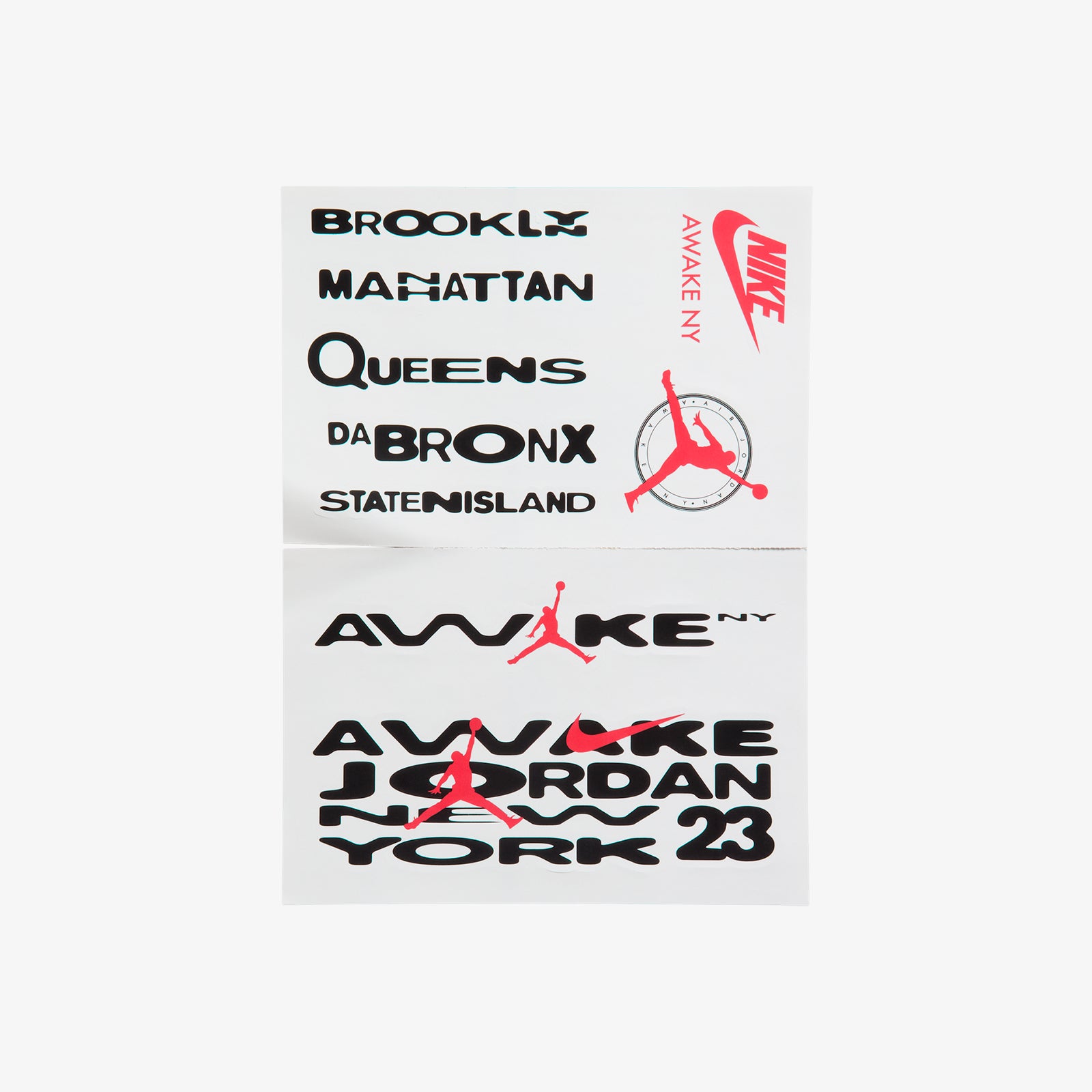 Unique to this collaboration are the co-branded details, including the “A” cut-out logo on the side panels and the substitution of the traditional “23” with “NY” on the right heel, reflecting Awake NY’s city pride. The shoe features translucent mesh panels with the Awake NY logo and a reflective 3M tongue with embroidered branding, while Nike Air cushioning ensures comfort and performance. Multiple lace options offer customization potential.