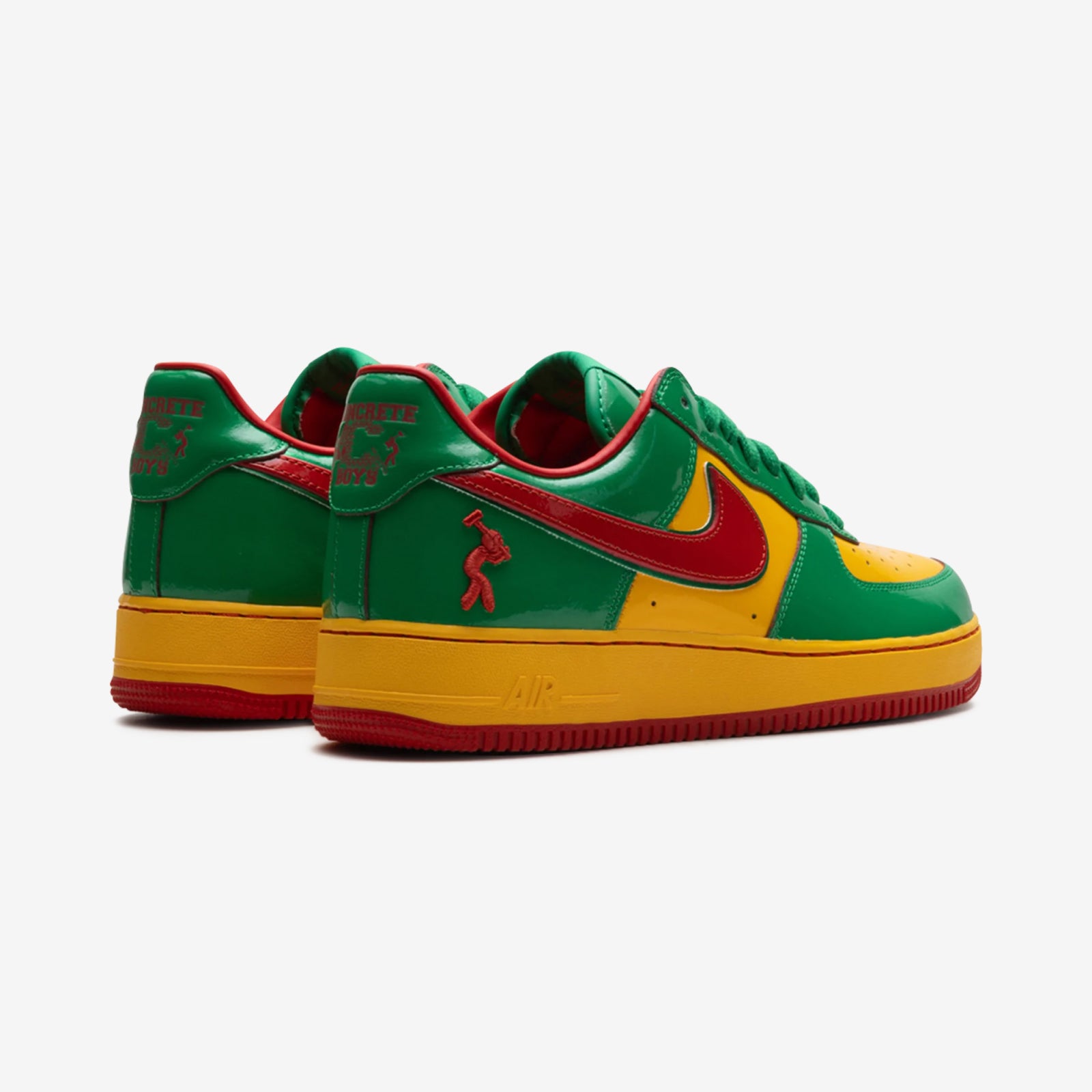 The Nike Air Force 1 Low Lil Yachty Concrete Boys Lucky Green is a vibrant collaboration celebrating the fusion of 1980s basketball heritage and Lil Yachty's modern streetwear influence. Released in May 2025, the sneaker features eye-catching patent leather in Lucky Green with contrasting mudguard, mid-foot, and heel panels in University Gold. Bright University Red accents adorn the Swoosh, outsole, and lining, creating a dynamic colourway inspired by Rasta influences and Lil Yachty's persona.
