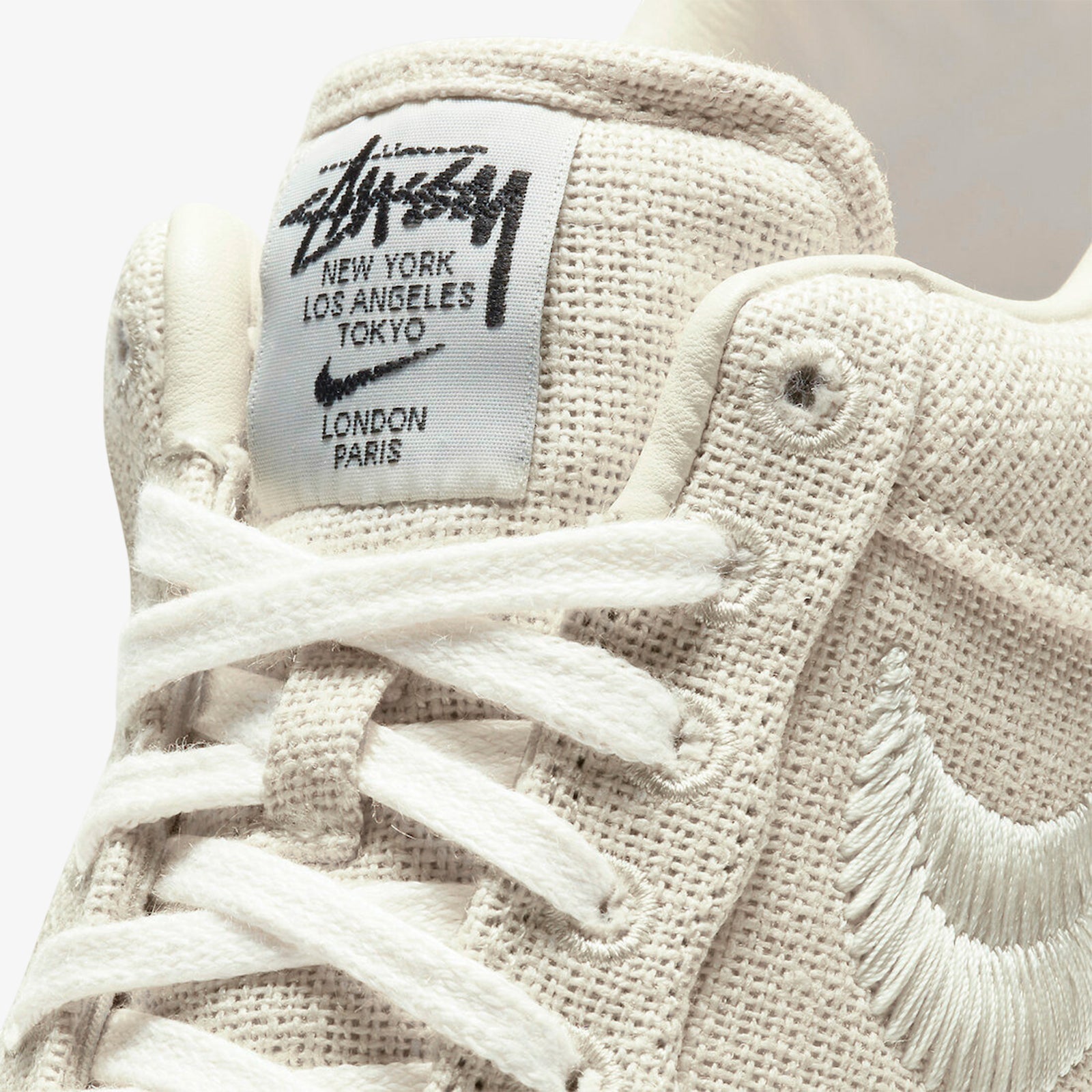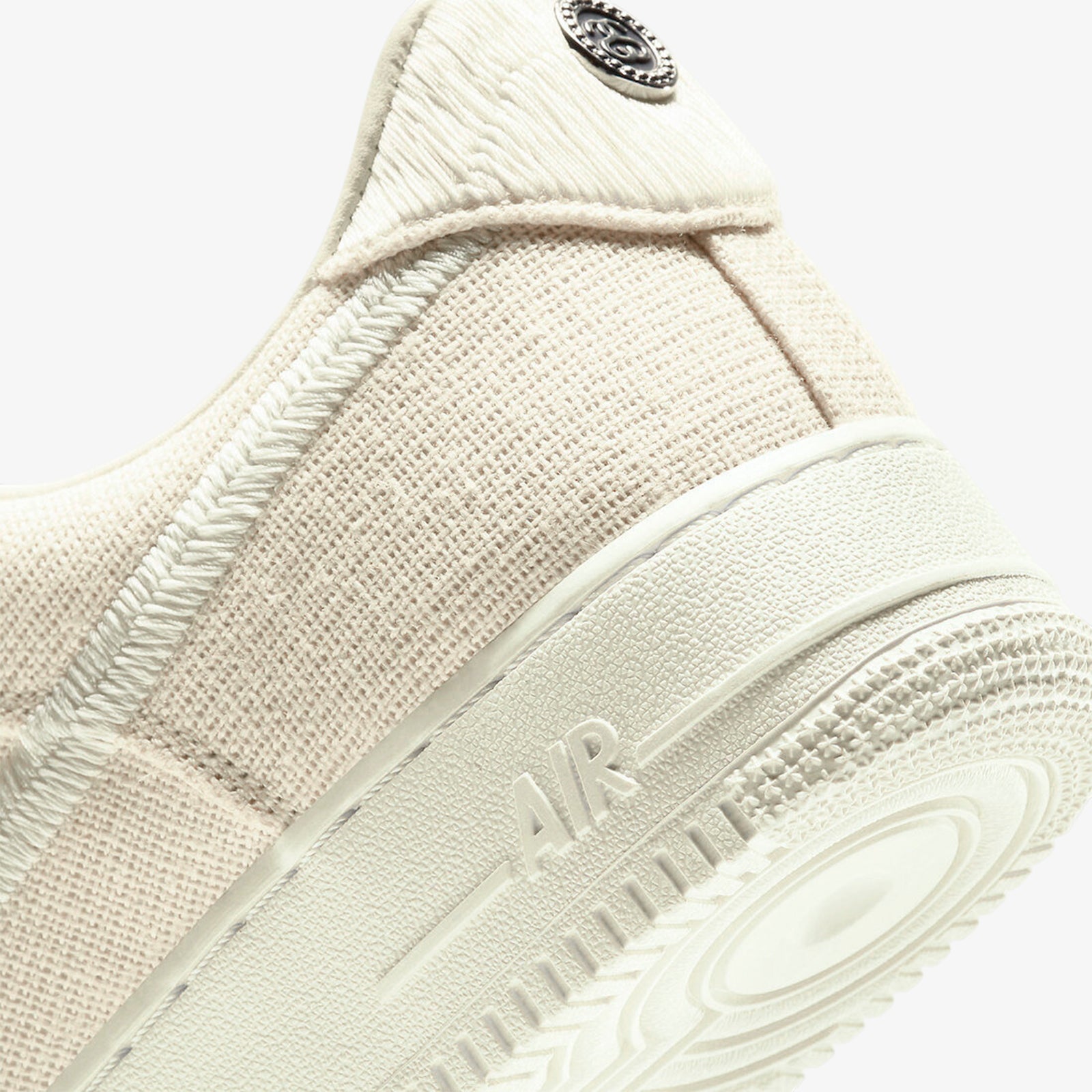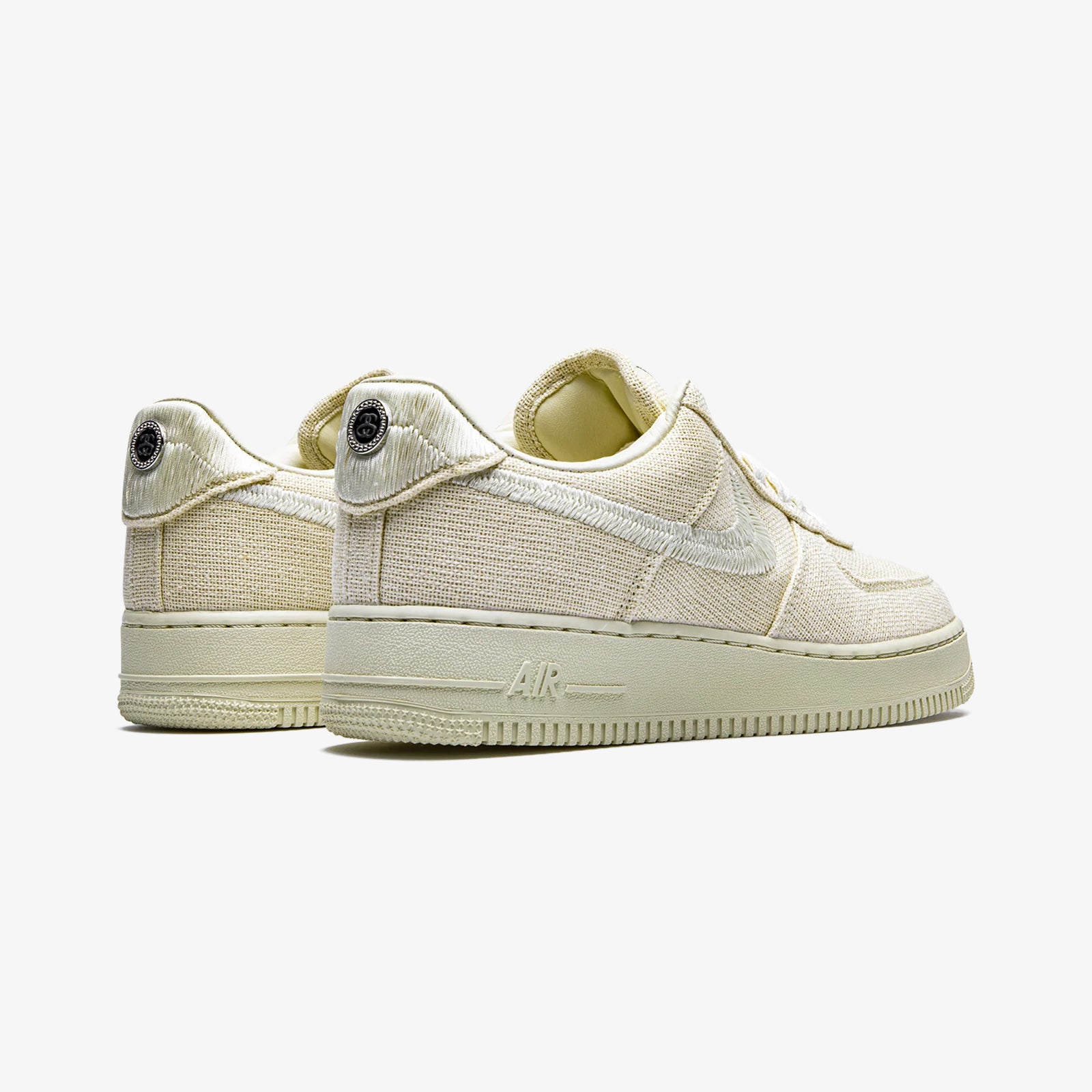 Fossil stone-toned canvas with split embroidery and iconic Stussy logos elevate the classic Air Force 1 in a sustainable form.