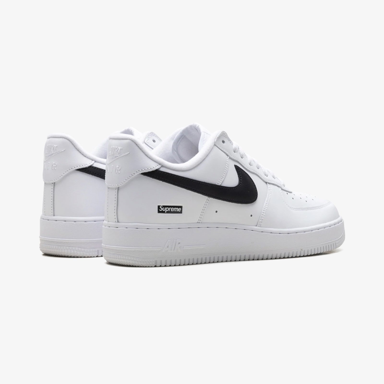 The Nike Air Force 1 Low Supreme White Black reimagines the classic Air Force 1 silhouette with a bold monochrome contrast and iconic branding from Supreme. Featuring a premium white leather upper combined with contrasting black swooshes and accents, this collaboration delivers sleek sophistication with streetwear edge. Supreme’s signature box logo appears discretely on the heel tab and the tongue, while perforations on the toe box ensure breathability.