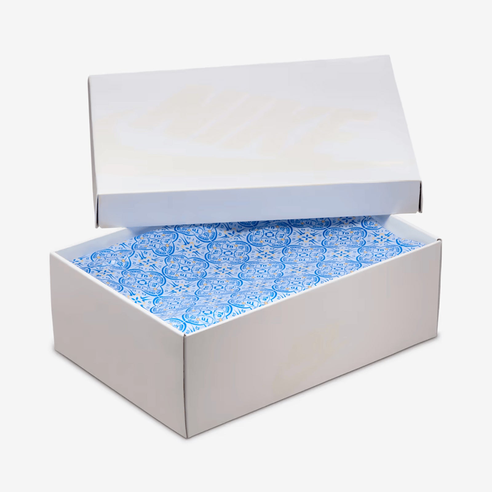 The Nike Air Max Plus Lisboa is an exclusive edition paying tribute to the rich culture and artistic heritage of Portugal’s capital. Celebrating Lisbon’s iconic azulejo tiles, the upper features a blue-and-white pattern inspired by traditional hand-painted ceramics, evoking the beauty and depth found throughout the city’s historic facades. A golden Swoosh on the side nods to local identity and adds a luxurious accent to the refined palette.