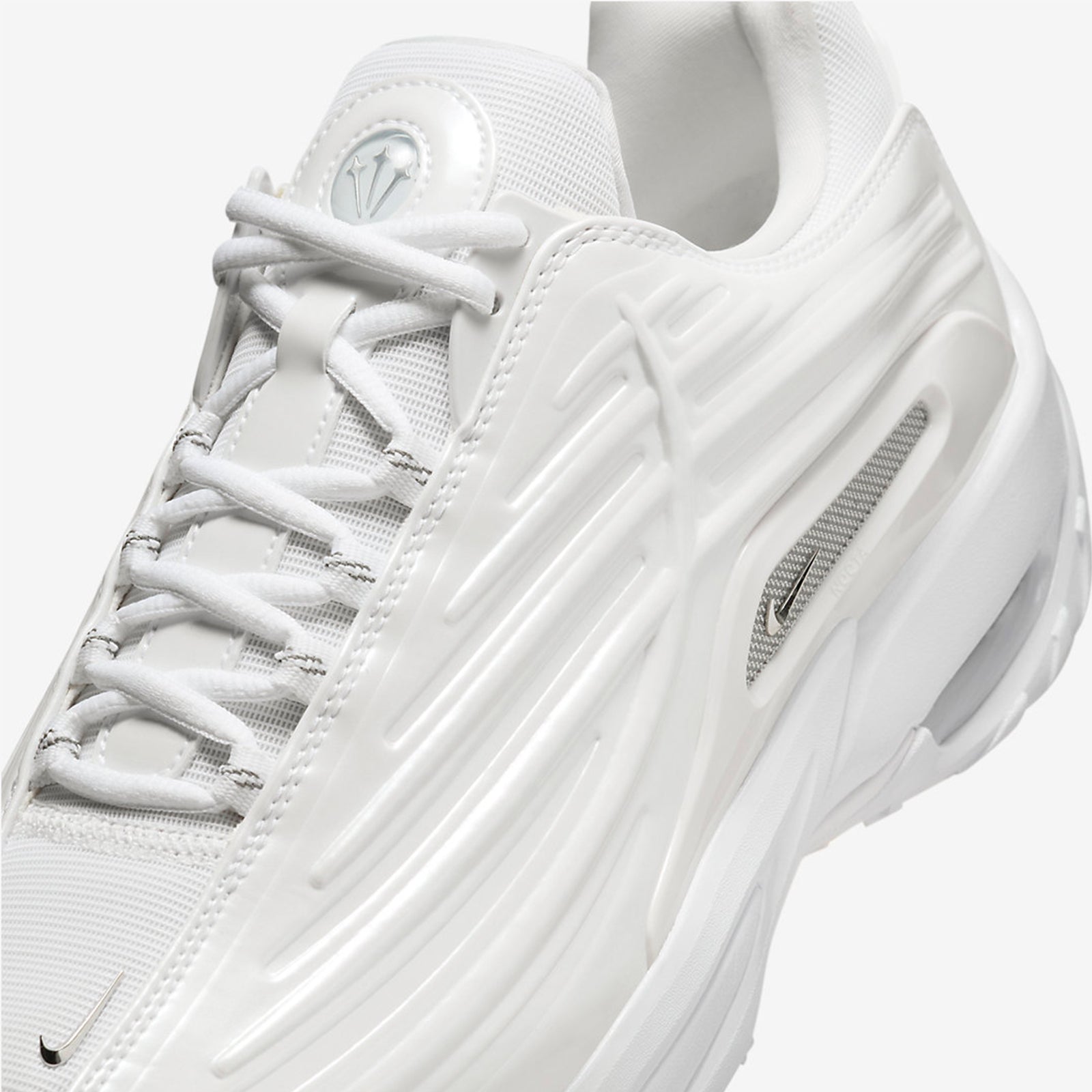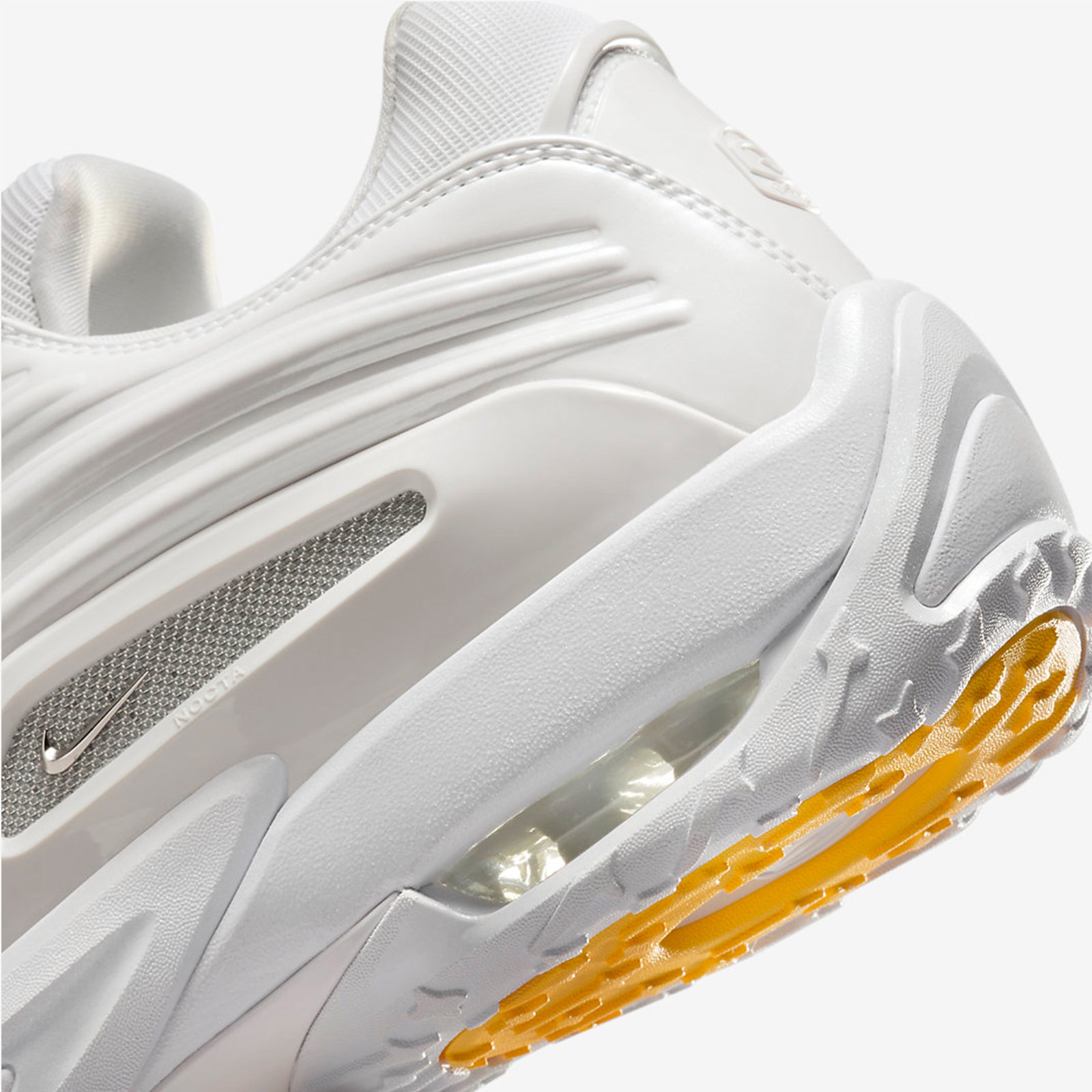 The Nike Hot Step 2 White, released in May 2024, offers a refined take on Drake’s NOCTA signature silhouette. This iteration features a clean white synthetic leather upper with a reflective finish, combined with breathable mesh panels for enhanced comfort. Chrome accents highlight the mini Swoosh logos, TPU overlays on the midfoot, and heel tabs, adding a touch of sophistication to the design.