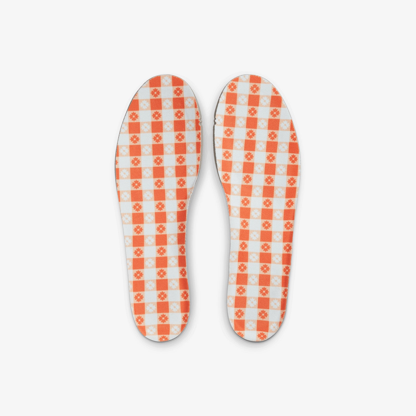 Attention to detail is evident in the rubber band encircling the toe, mimicking a lobster claw restraint, complemented by a picnic blanket-inspired lining and sockliner that add playful charm. The harmonious palette of Orange Frost, Electro Orange, and White is accented by a tonal white Swoosh and finished with an orange rubber outsole, combining style and skate performance.