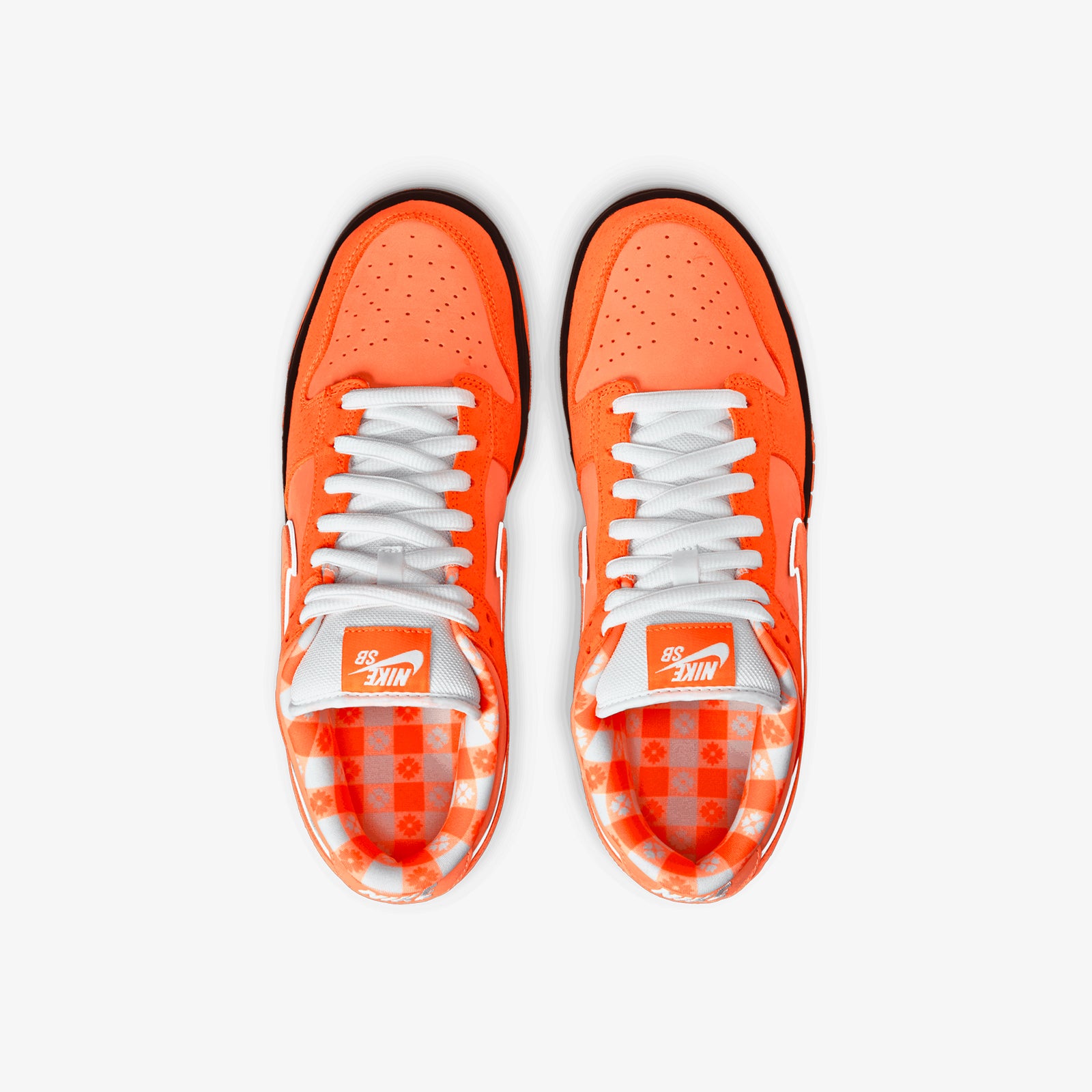 The Nike SB Dunk Low Concepts Orange Lobster is a curated artifact celebrating a unique blend of culinary inspiration and skate culture. This sixth installment in the Concepts Lobster series is crafted from vibrant orange nubuck with delicate speckled overlays that echo the lobster’s shell texture.
