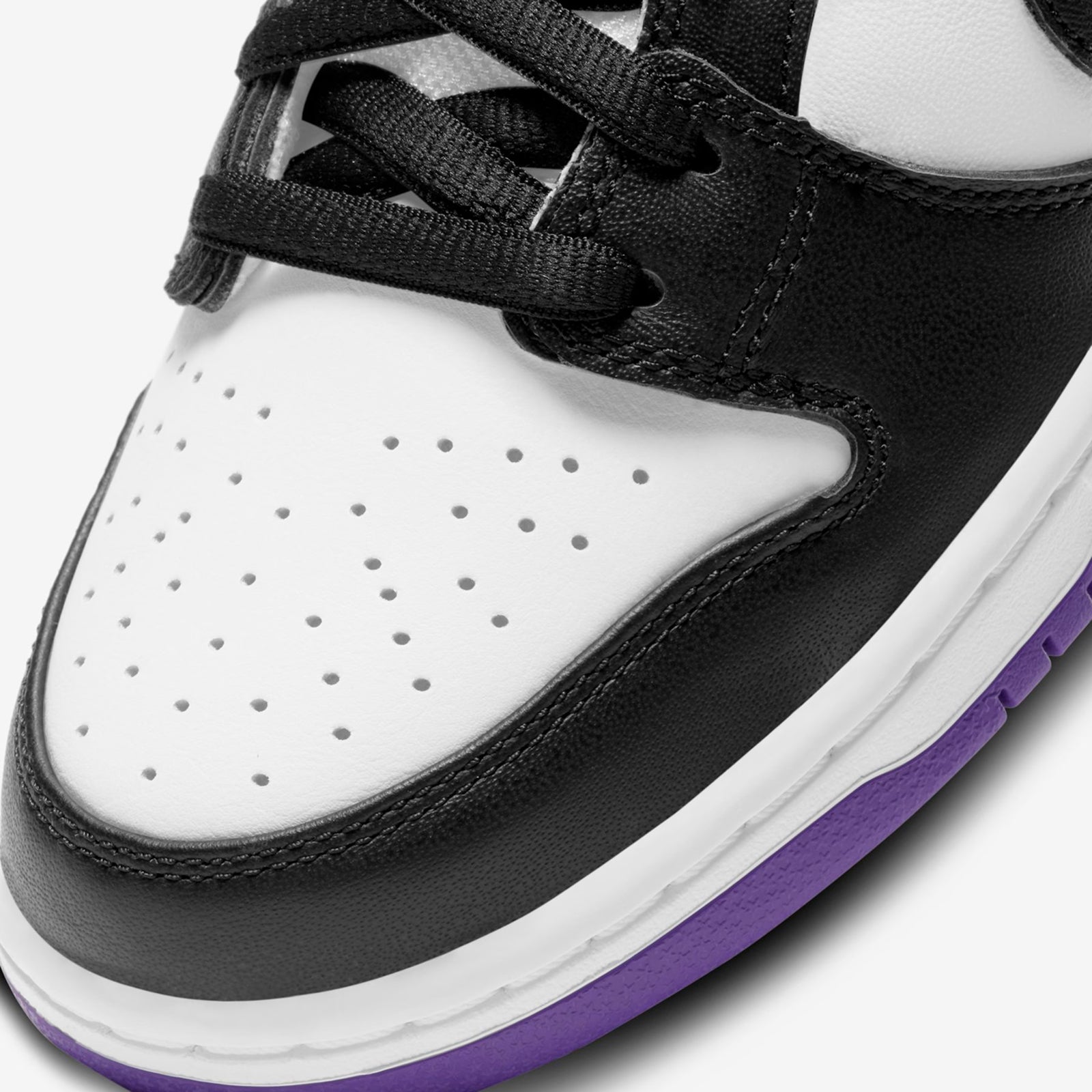 The Nike SB Dunk Low Court Purple is a curated artifact that reinvents the iconic “Black Toe” Air Jordan 1 with a vibrant Court Purple twist. Featuring a premium white leather base contrasted by black overlays and eye-catching Court Purple suede on the quarters and rubber outsole, it delivers a bold and stylish skate silhouette.