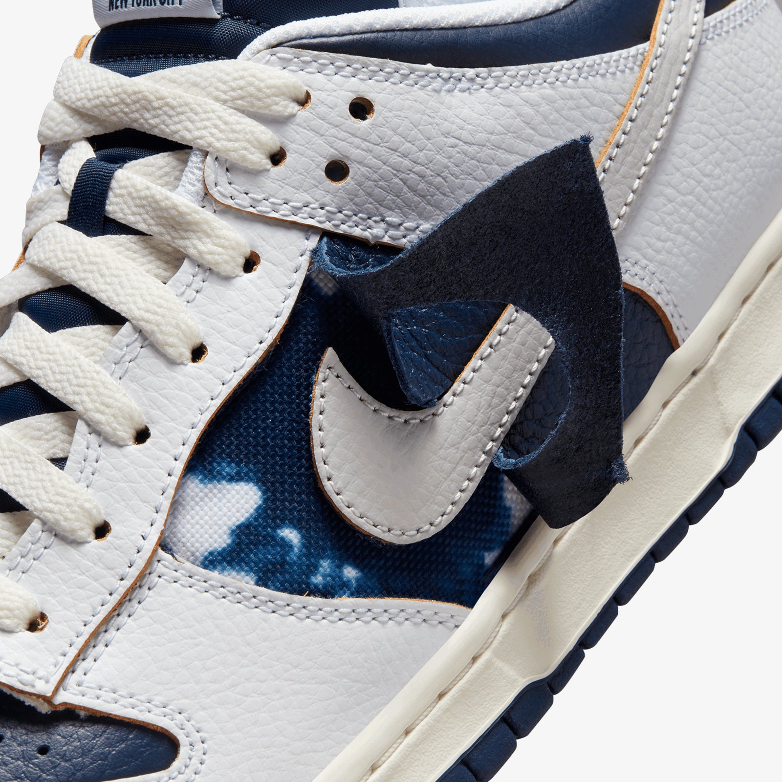The Nike SB Dunk Low HUF New York City pays tribute to Keith Hufnagel, the founder of HUF and his enduring connection to New York City. The sneaker features a premium white tumbled leather upper with deep navy leather overlays and contrasting Sail leather Swooshes that highlight the shoe's classic structure. Key branding elements include “Keith” and “Forever” embroidered on the left and right heels in a font reminiscent of the New York Yankees logo.