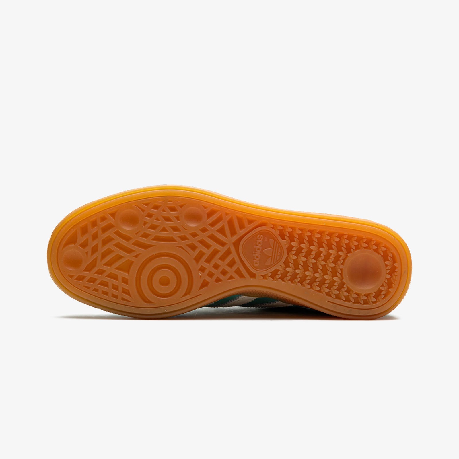A sapatilha destaca-se pelo artesanato fino com um subtil branding dourado foil na lateral, substituindo o tradicional texto "Handball Spezial" pela assinatura "Sporty & Rich". A sola wedge de borracha gum fixa o design, oferecendo durabilidade, conforto e um toque vintage típico do modelo original. O colar almofadado e a palmilha acolchoada garantem conforto durante todo o dia.